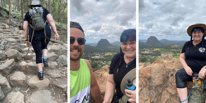 This is where Loretta set herself the #DreamBig goal of climbing Mt Ngungun (of the Glass House mountains). A mountain she had fond memories of and had last climbed 9 years earlier. Loretta fearfully wrote the goal up on our DREAM BIG Wall at Hawthorne knowing that there was a literal and metaphorical mountain to climb.